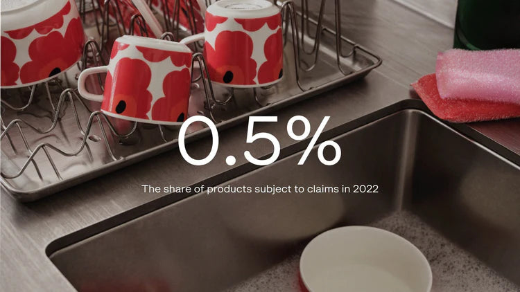 Before the launch of a new Marimekko product, it undergoes rigorous testing to ensure that it meets our demanding quality standards. Some of the things we test include fabric shrinkages, colorfastness, and abrasion resistance. Additionally, we aim to keep the share of quality claims of sold products below 0.5% – that’s less than 1 in 200.