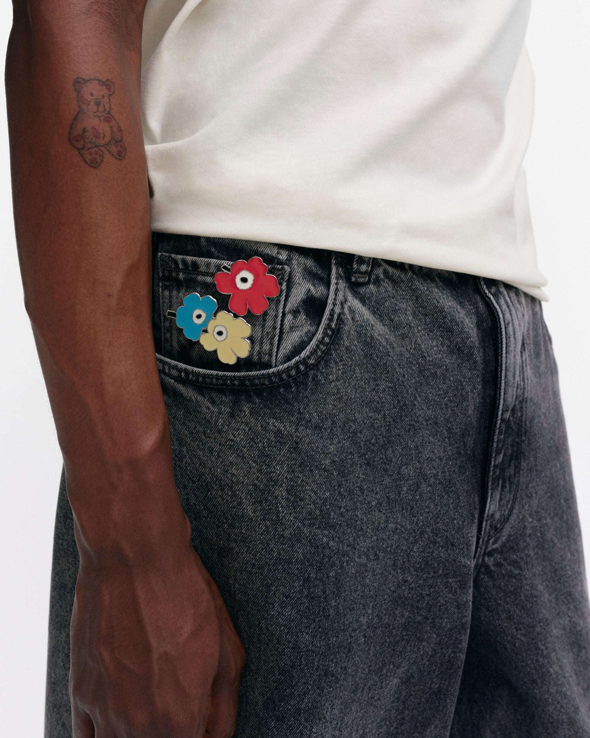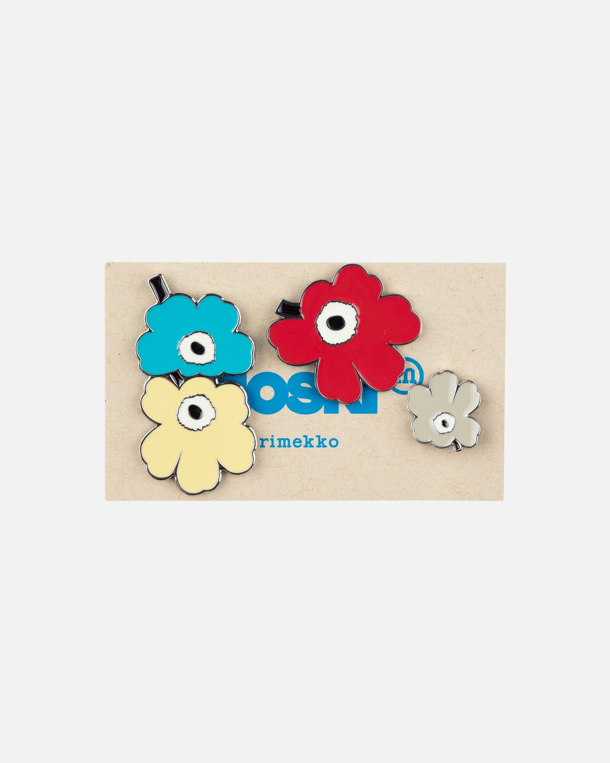 The Pumpuli Set includes three Unikko pattern flower pins with rubber stoppers.