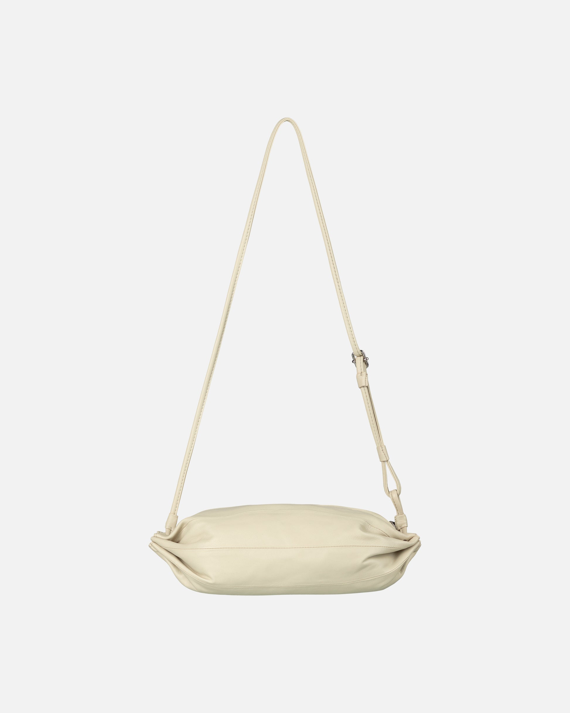 Karla is a modern twist on a classic sweet—this bag was inspired by the eye-catching form of a candy wrapper. The Karla bag is made of leather, and it has an adjustable shoulder strap with a metallic buckle, a zipper closure, and a zipper pocket on the inside.