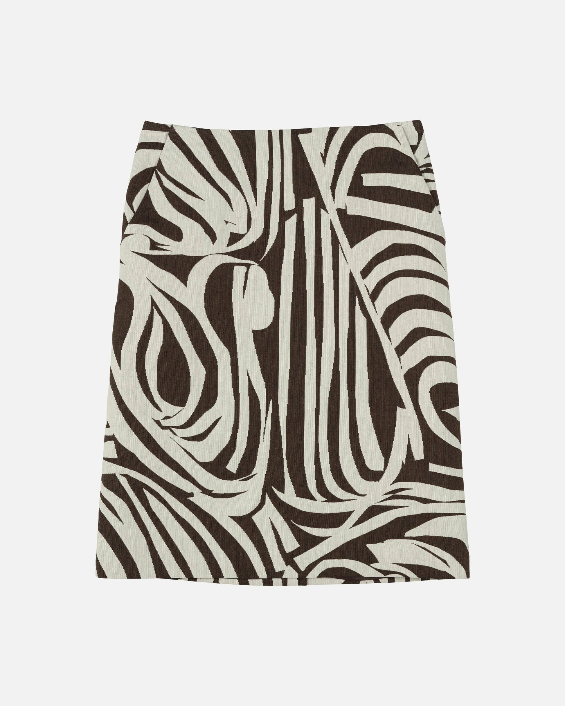 The Valaa skirt is made of a cotton blend, and it has a slim, straight fit. The skirt features the jacquard knit Jokuraita pattern, and it has concealed zipper in the back seam, slanted side pockets, and a hem slit and darts in the back. The skirt is lined.The skirt is made of a cotton and polyester blend, which contains 42% recycled cotton and 38% recycled polyester.The Jokuraita (some stripe) design by Antti Kalevi started as a spontaneous drawing inspired by zebra patterns. The relaxed and rough execution of the design beautifully exemplifies how the best results are often achieved when you don’t try too hard.