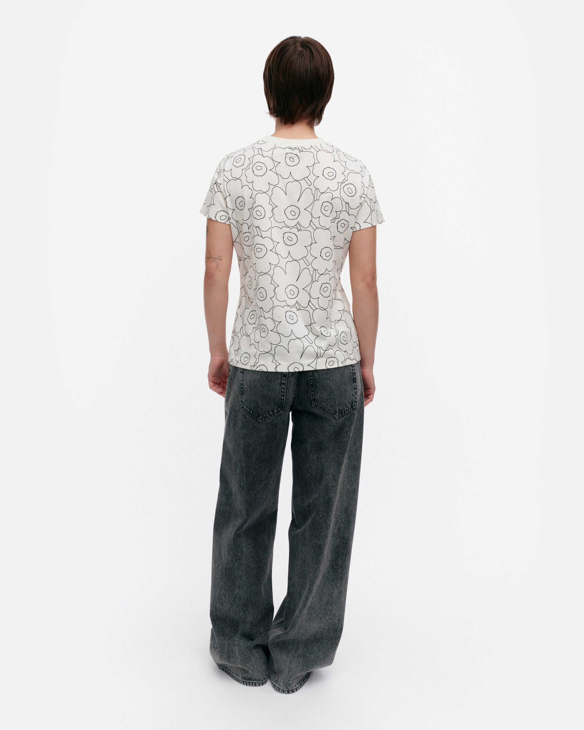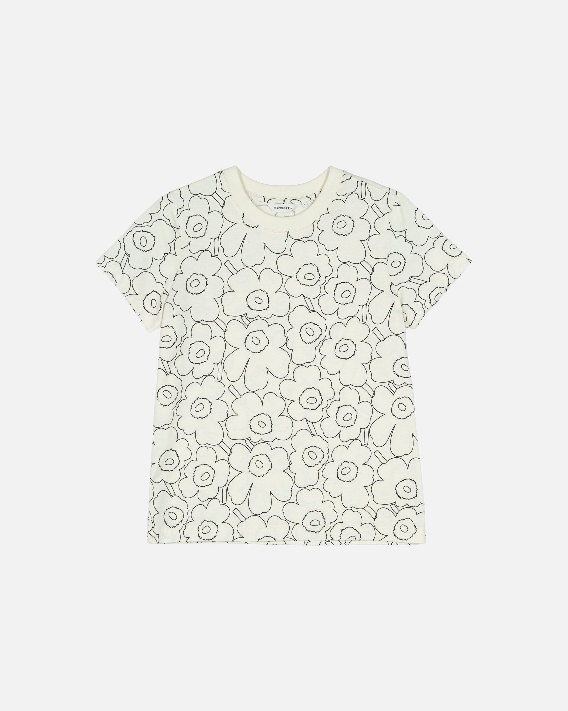 The Heleys top is made of organic cotton jersey, and it has a slim, straight fit. The short-sleeved top features the Piirto Unikko pattern and an O-neck with a rib finish.