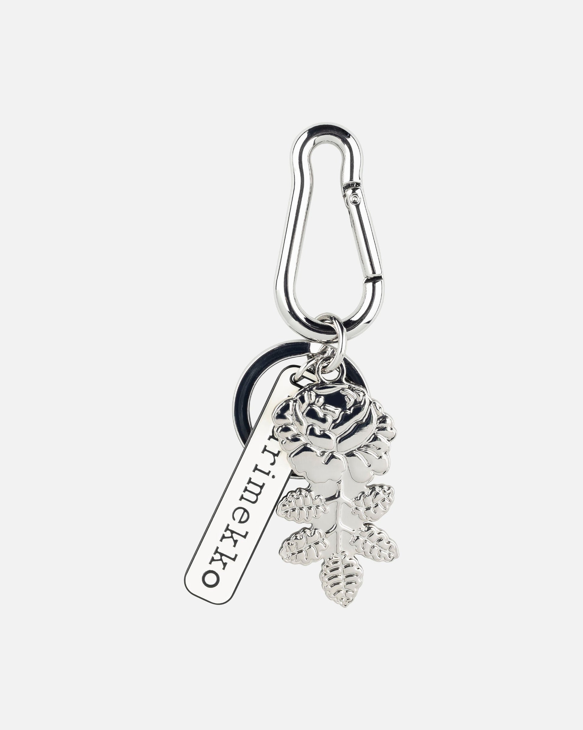 The Puhallus key chain features the Unikko flower, the Marimekko plate, a key ring, and a clip.