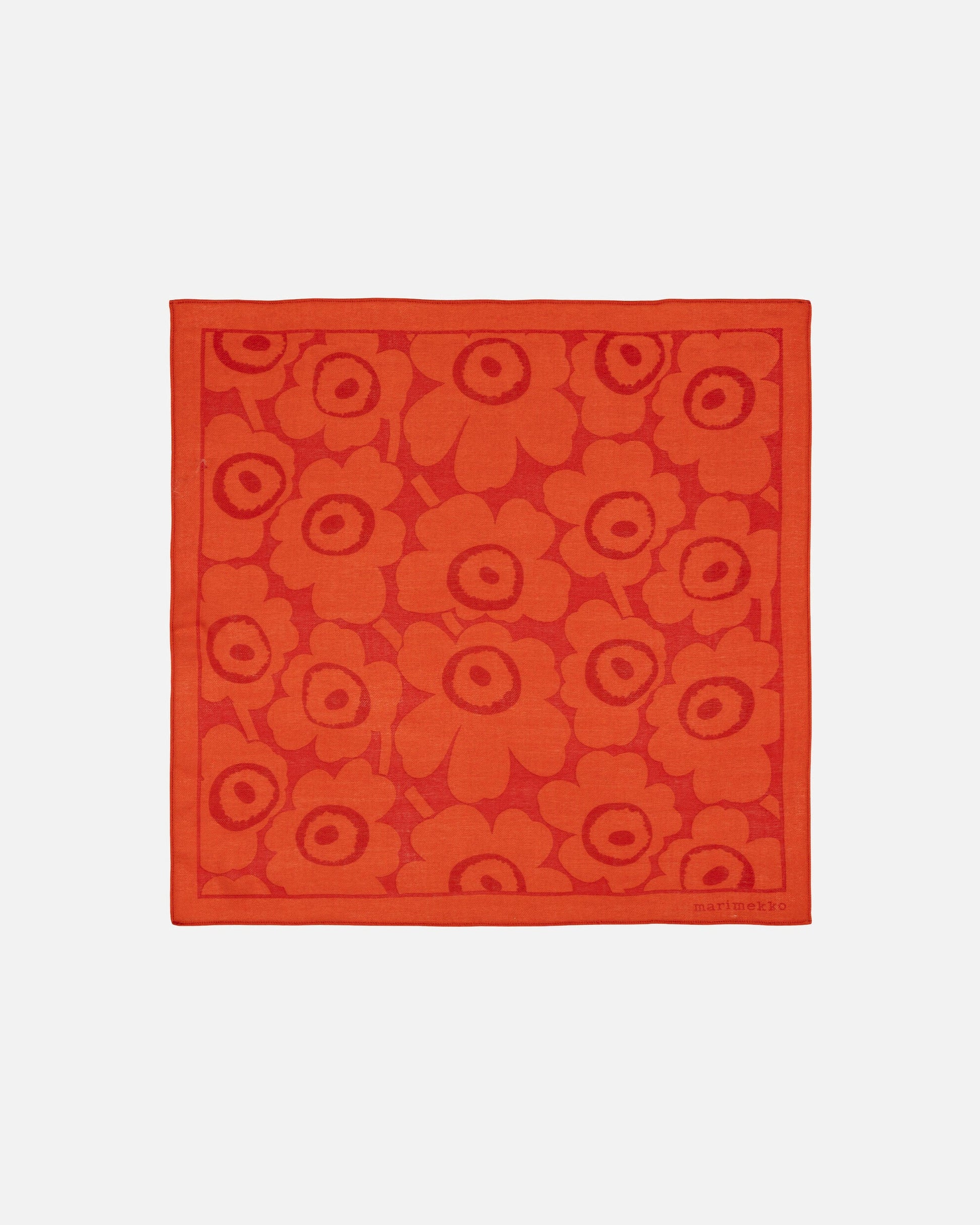 The Kuittaus scarf is made of sheer wool twill. The small scarf features the Unikko pattern and stitched edges.