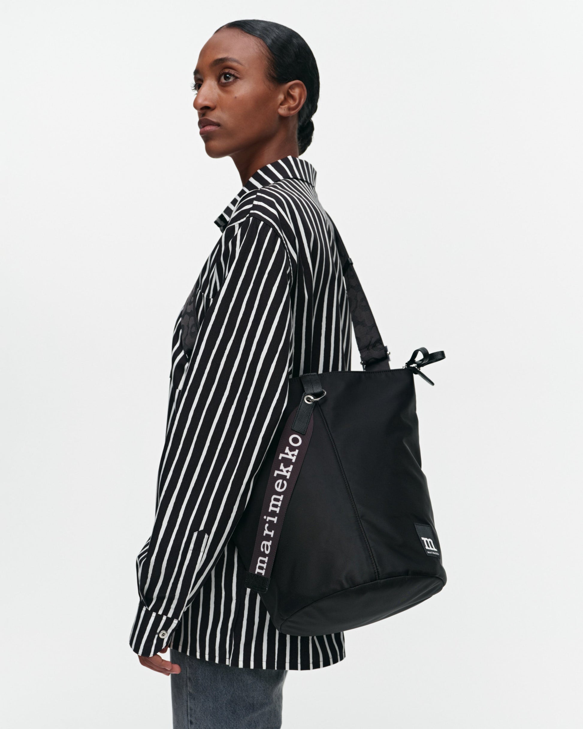 The All Day Bucket shoulder bag is made of recycled nylon.