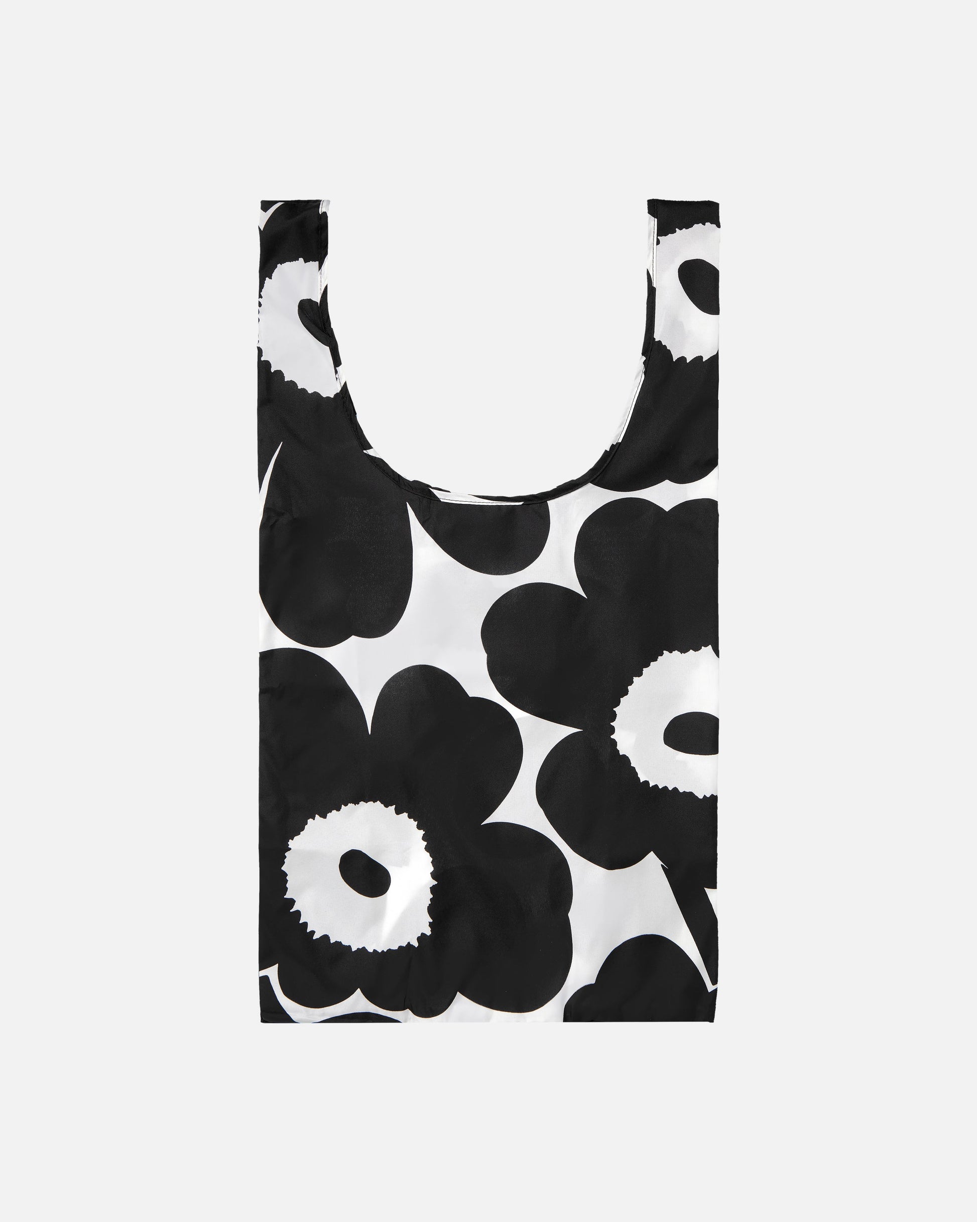 The Smartbag is made of polyester in the Unikko pattern. When not in use, the bag can be folded up and stored in the inside pocket.