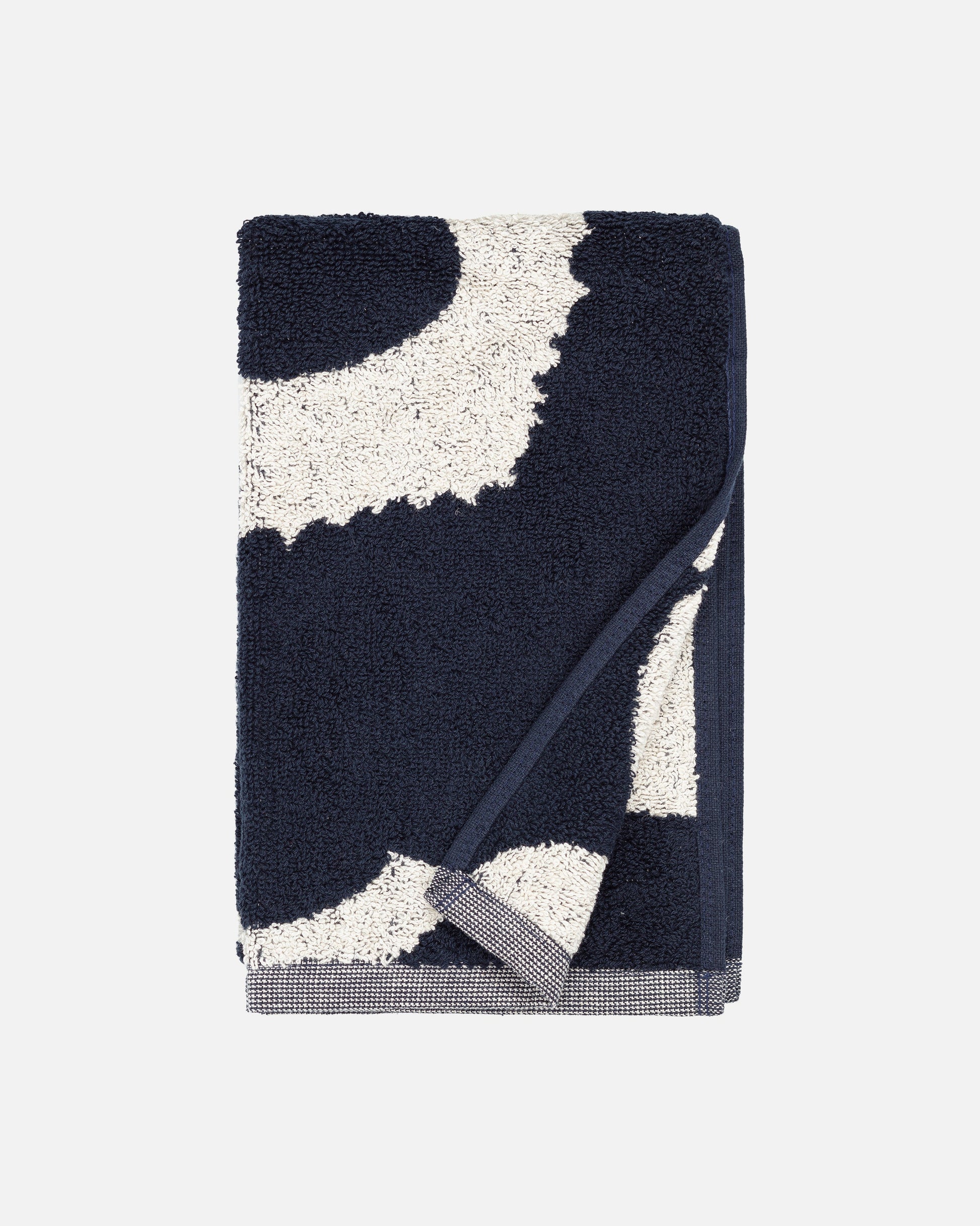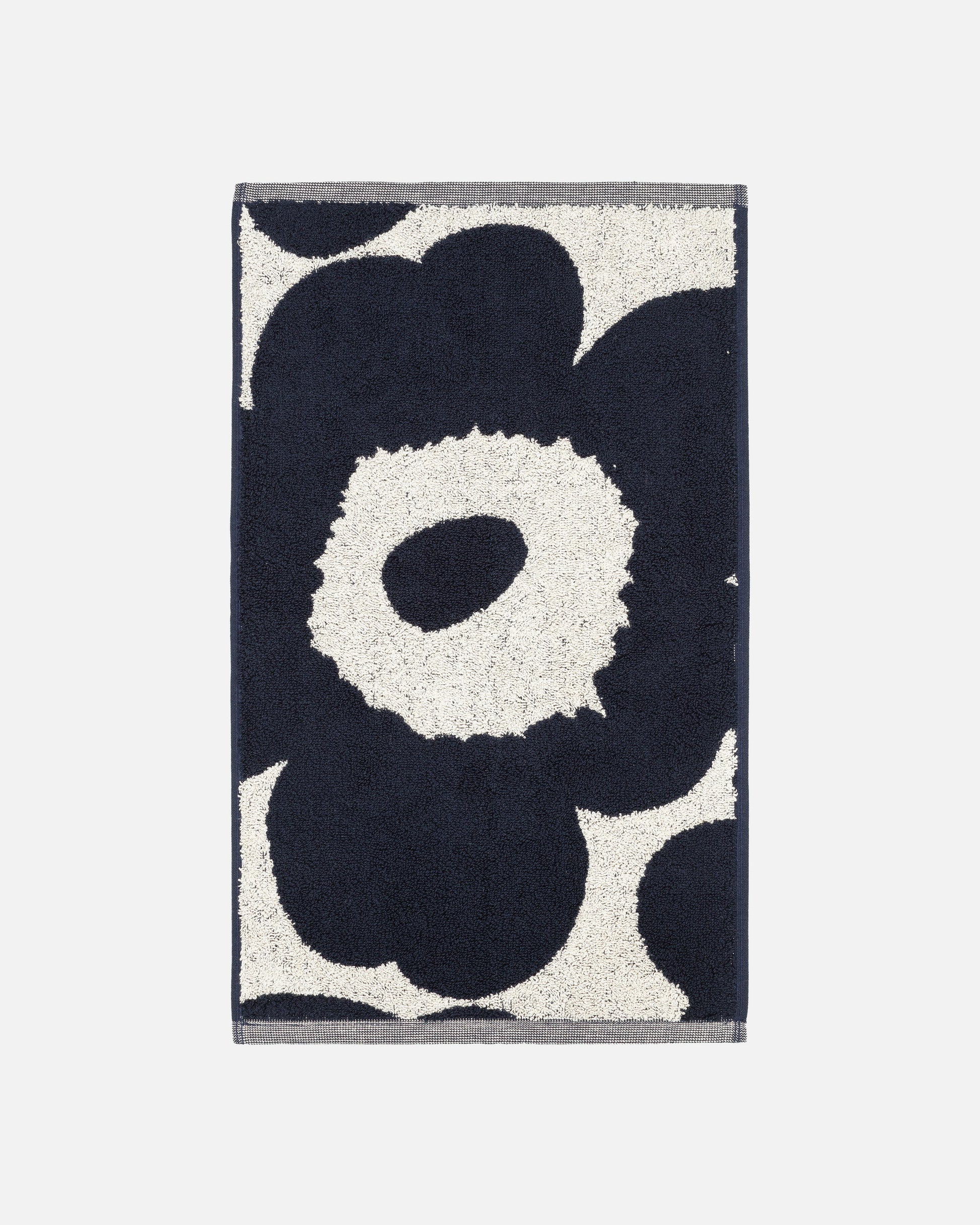 Made from a cotton and linen blend, this terry guest towel features the cotton and dark blue coloured Unikko (poppy) pattern. The towel has two different coloured sides because the dominant colour on the reverse is the opposite of the right side.