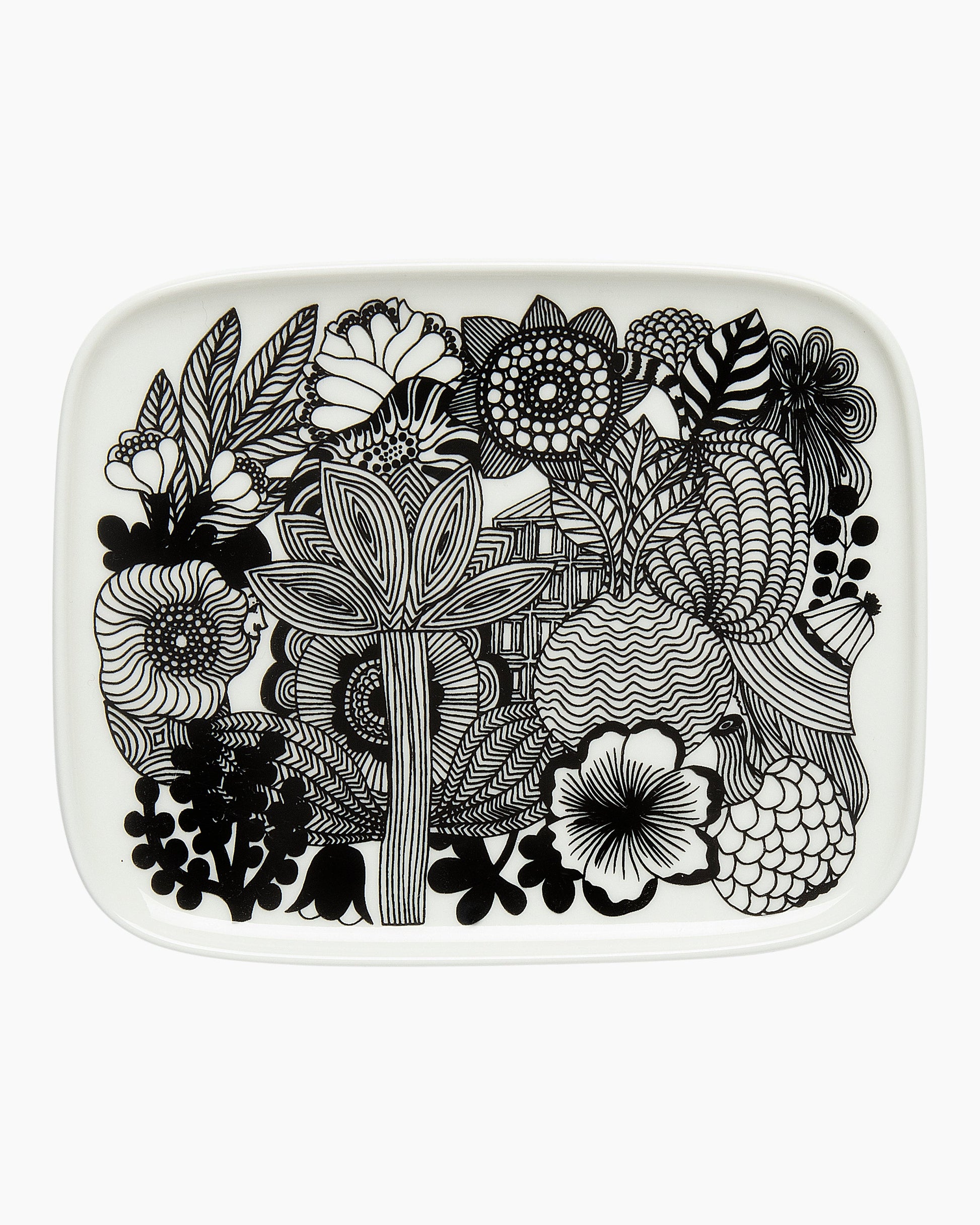 Made of white stoneware, this small rectangular plate depicts healthy flowers in bloom. It’s dishwasher, microwave, and freezer safe; glazed colors and pattern remain vibrant.