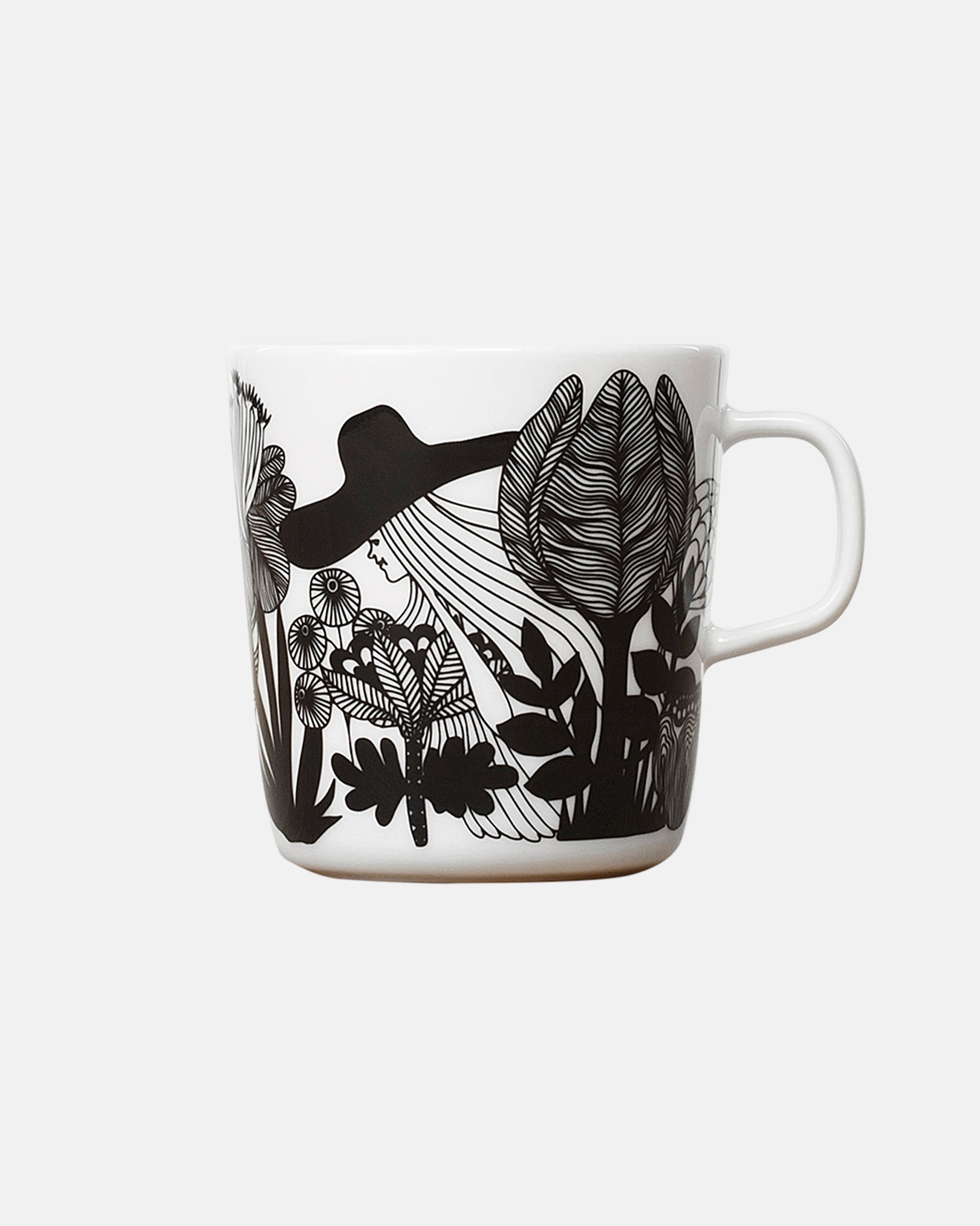 In the Räsymatto pattern on this Oiva coffee cup you can see a rag rug placed on the floor of a garden cottage, with rays of sun dancing on its figures. The cup is made of dishwasher, oven, microwave and freezer proof white stoneware.