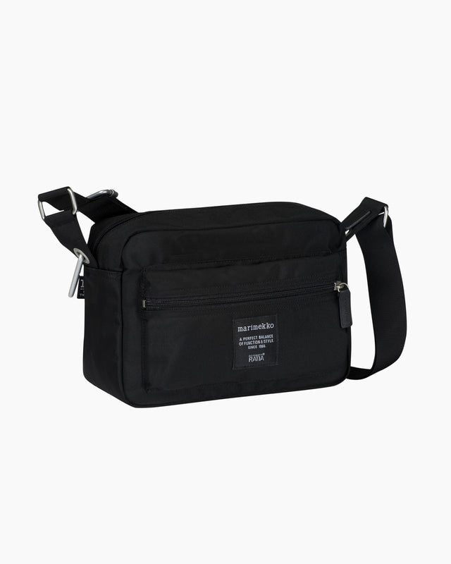 The My Things shoulder bag is made of recycled polyamide. The bag has a zipper closure, two zipper pockets on the outside, and four pockets on the inside. The adjustable shoulder strap is made of nylon, and it has a metal clip hook for hanging small items.