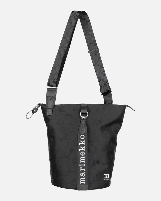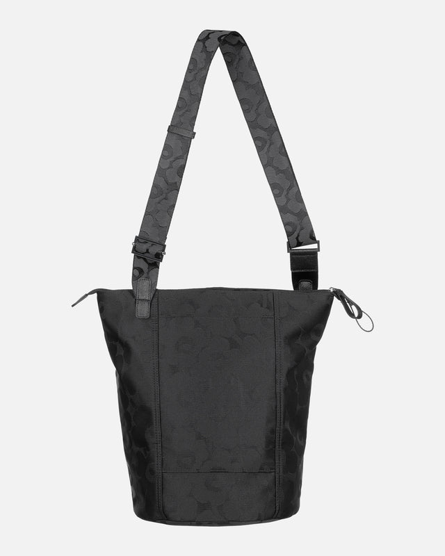 The All Day Bucket shoulder bag is made of jacquard knit recycled polyester in the Unikko pattern.
