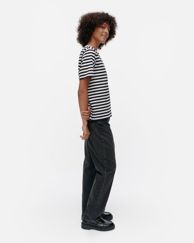 When jeans started to become increasingly popular among both women and men, Annika Rimala wanted to design a collection of cotton jersey clothes to go with jeans. For all denim lovers, regardless of age, size or gender. That’s how Marimekko’s first cotton jersey collection was born. Evenly striped, expressing equality.